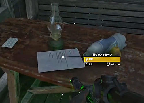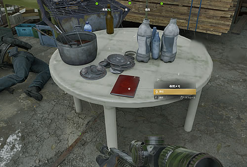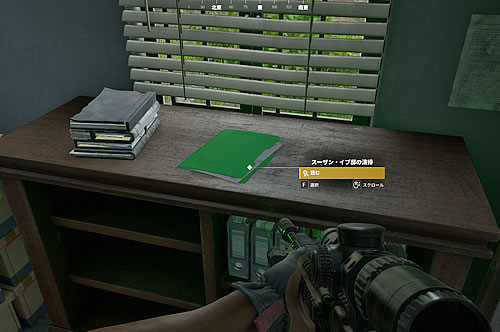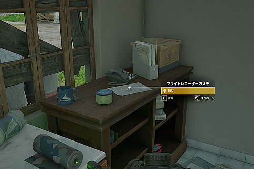 入手場所:「療養所」から「射撃場」へ向かう途中にあるテントの机上にある緑色のフォルダ