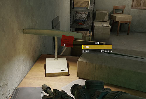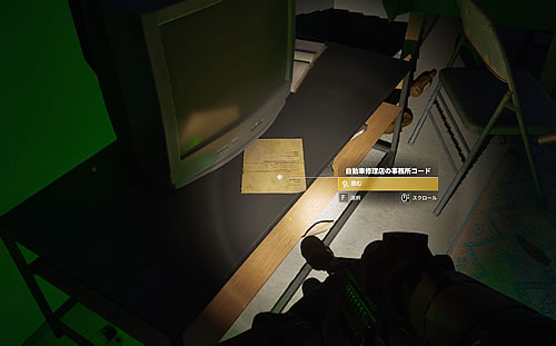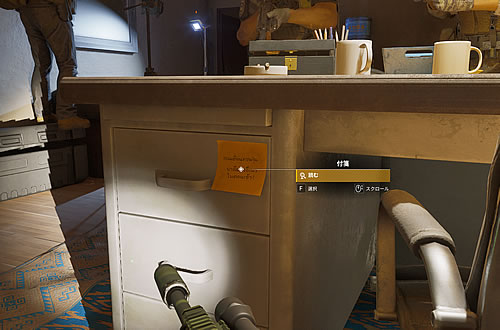 入手場所:予備基地の奥、大きい建物の1階のノートパソコン横の付箋