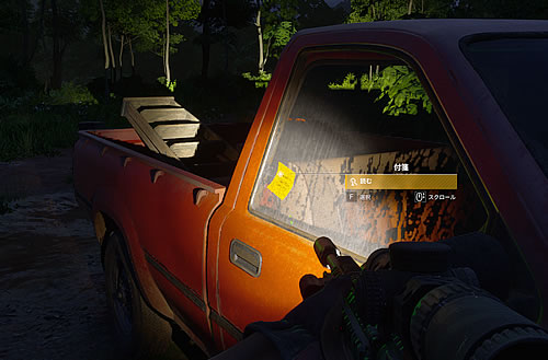 入手場所:「風力タービン」のすぐ横に停めてある赤いピックアップ車両の窓に貼ってある付箋