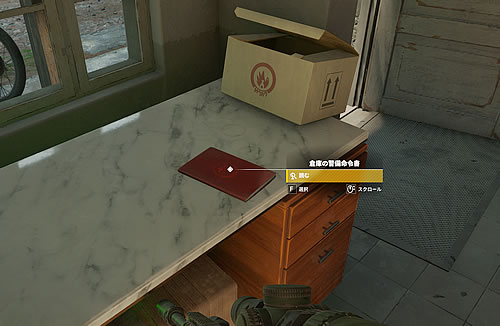 入手場所:予備基地の南側、入口付近の東側の建物内の机上にある書類