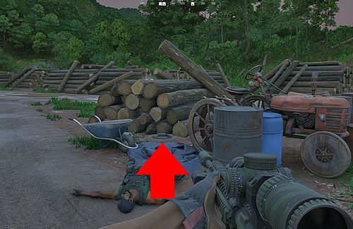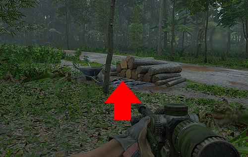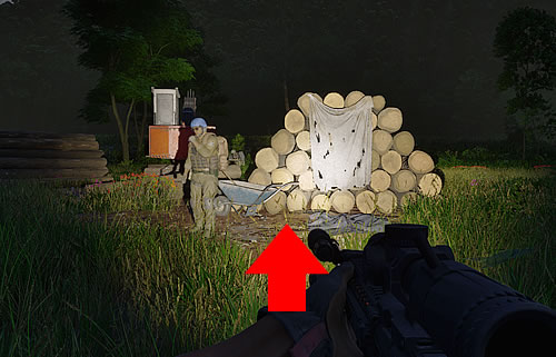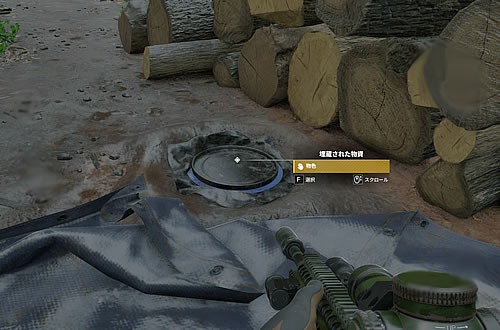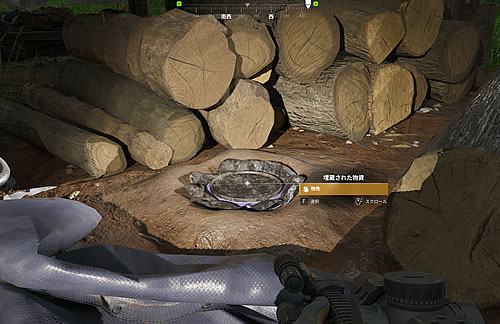 場所:LZリマ2の西、「伐採場」にある積まれた丸太とシートの間