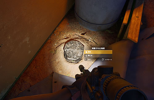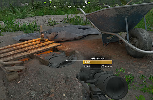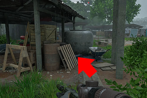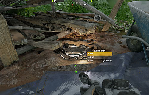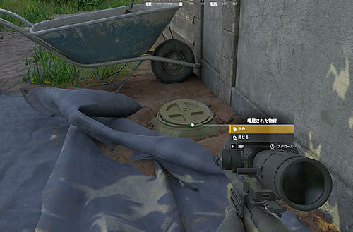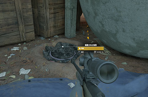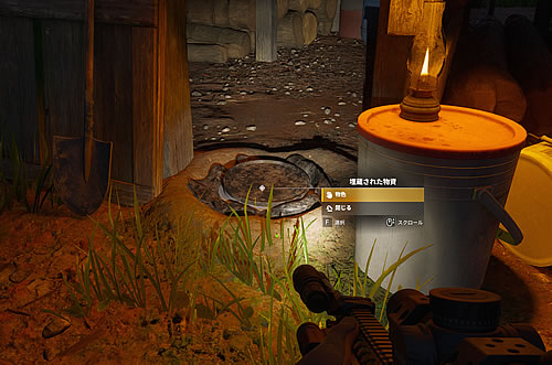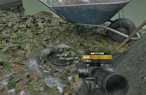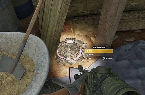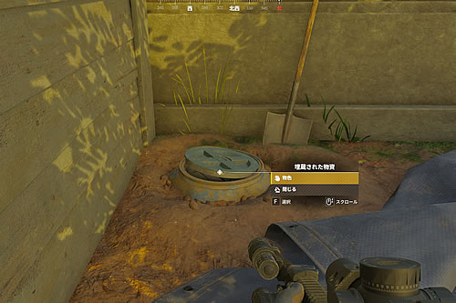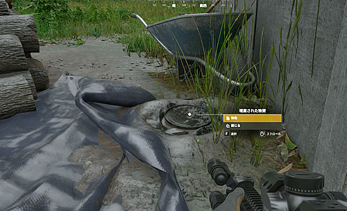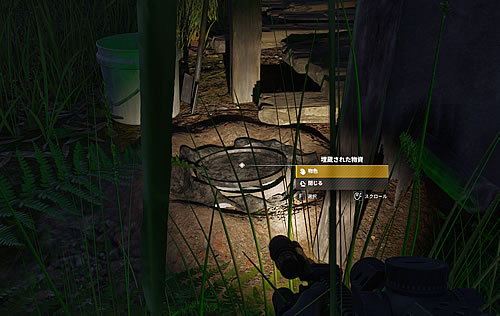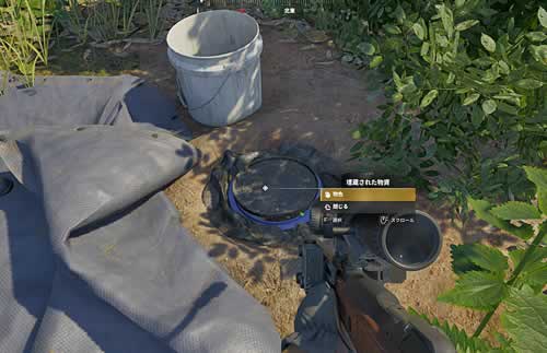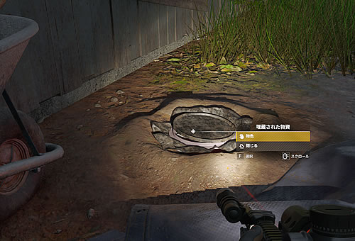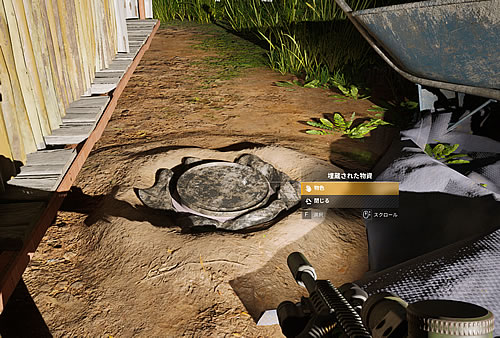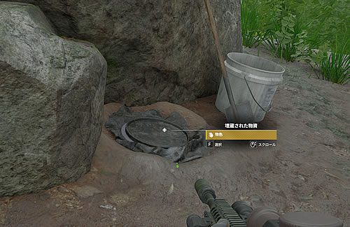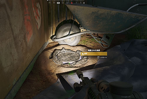 場所:LZホテル2の南西、「孤立した農場」の倉庫横の大きな甕や一輪車の後ろ