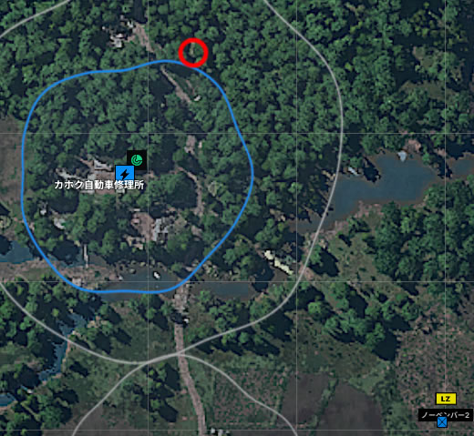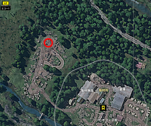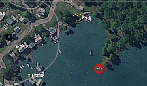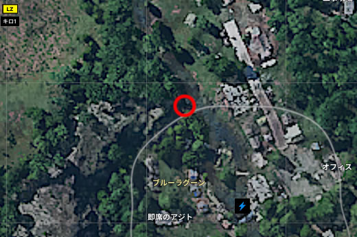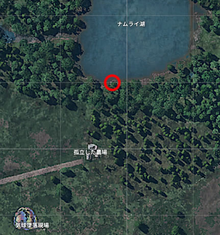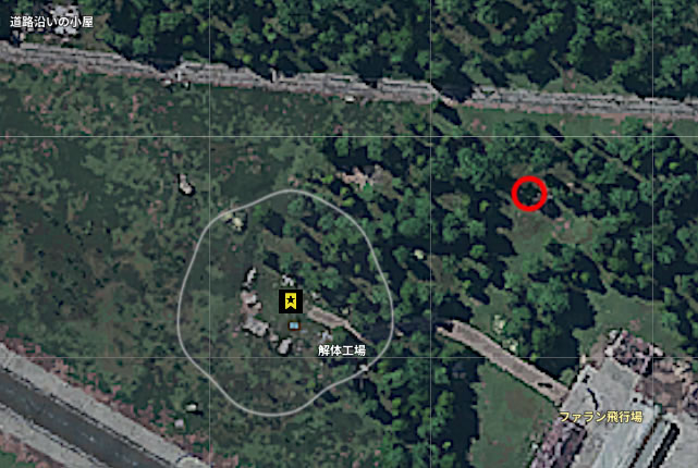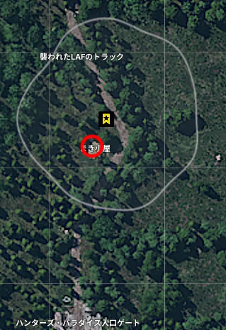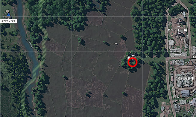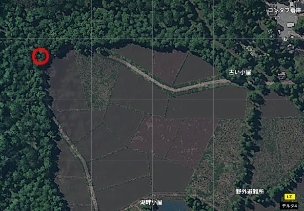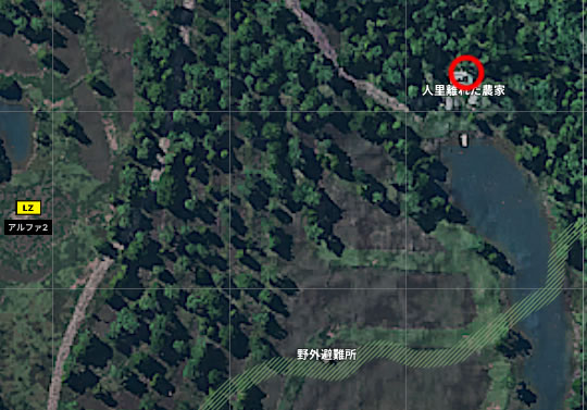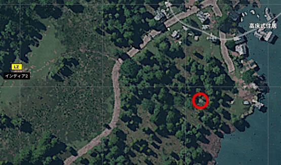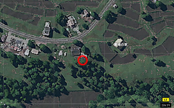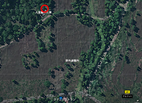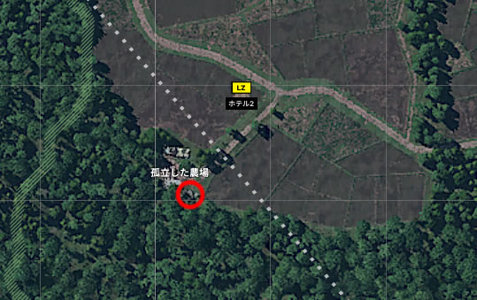 場所:LZアルファ1の北西、「人里離れた家」の右側倉庫の裏にあるシート横、大きさは2✕6マス