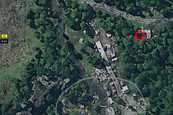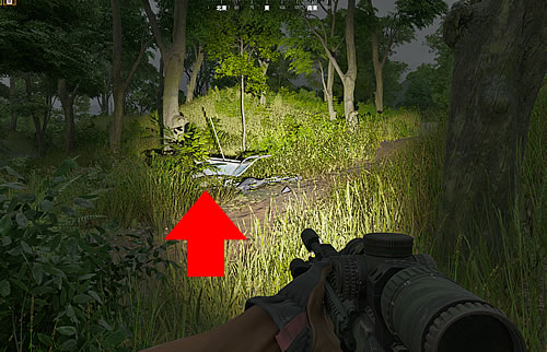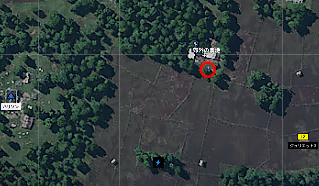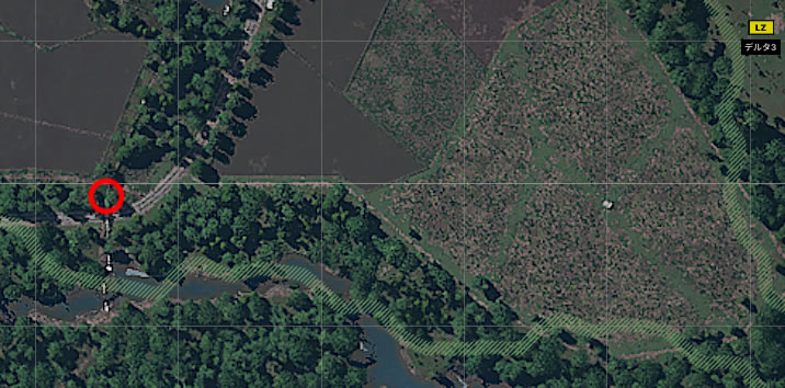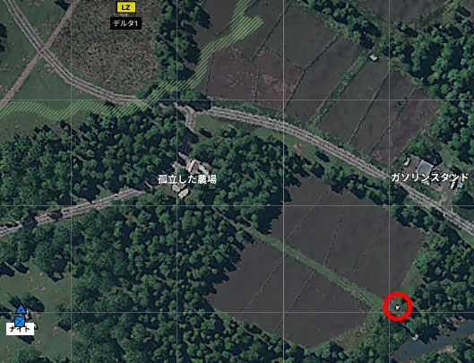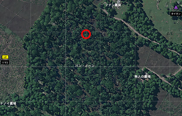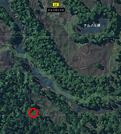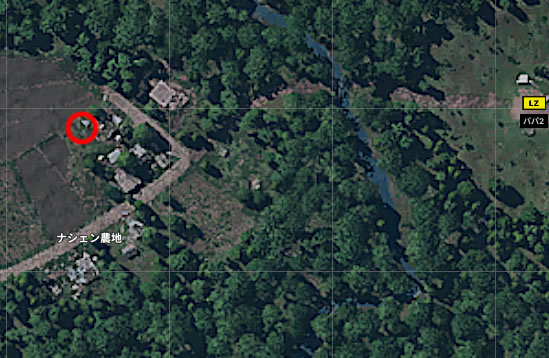 場所:LZジュリエット2の南、川沿いの畑の奥にある壊れたリヤカーの下