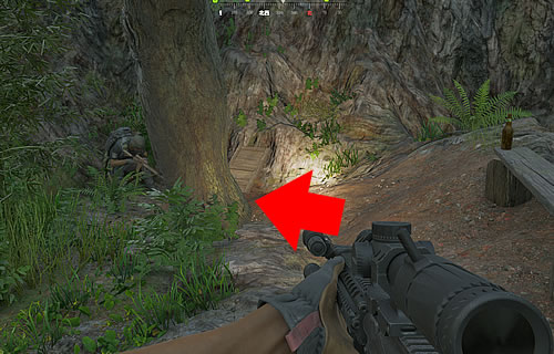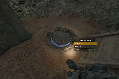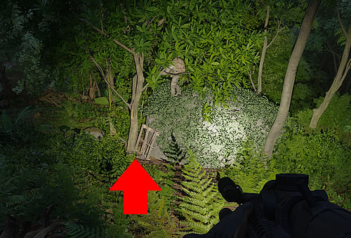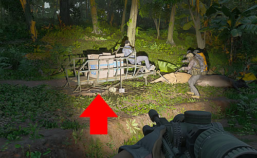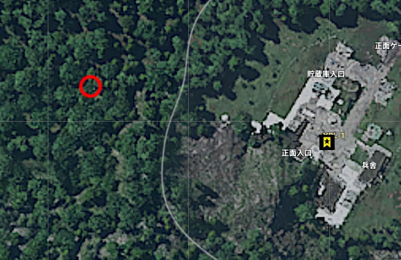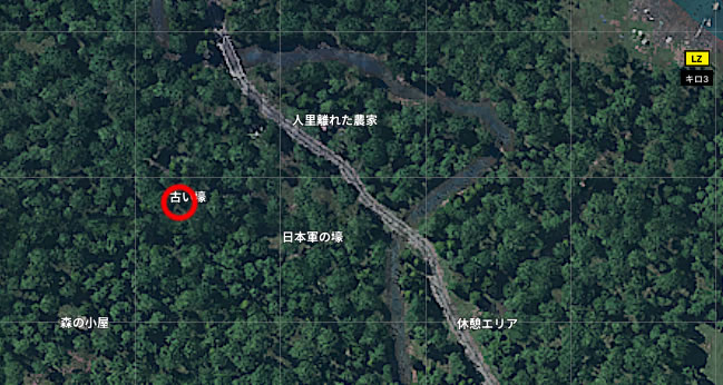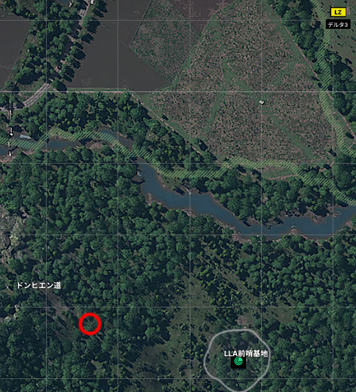 場所:LZキロ3の西、森の中の「古い壕」の横の壊れたパレットの下