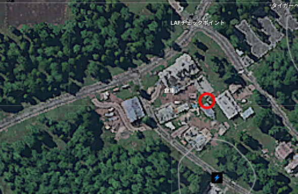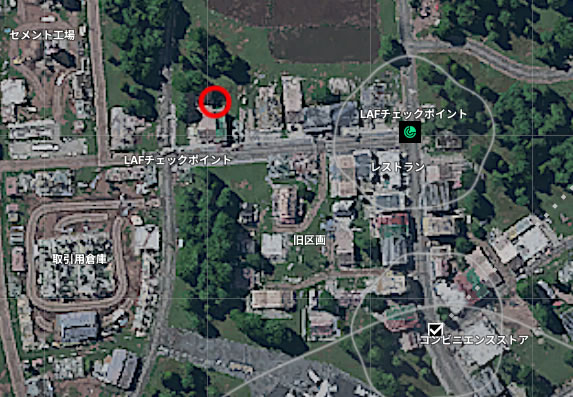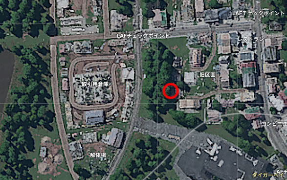 場所:セントラル北側の「LAFチェックポイント」の西、青い建物の裏のブロック塀を乗り越えないと入れないスペースの庭角