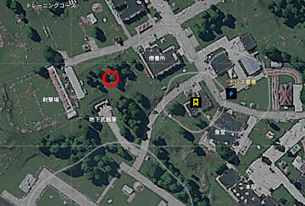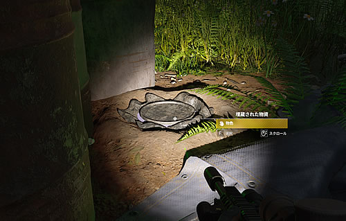 場所:「地下武器庫」の上、フェンスが破れてて通れるあたりの一輪車とシートの間、大きさは5×9マス