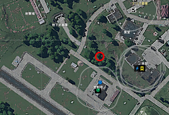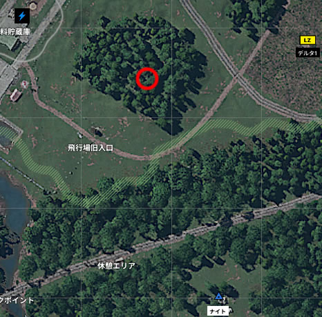 場所:郊外の格納庫の北西、道の脇にある壊れた櫓とシートの間