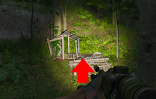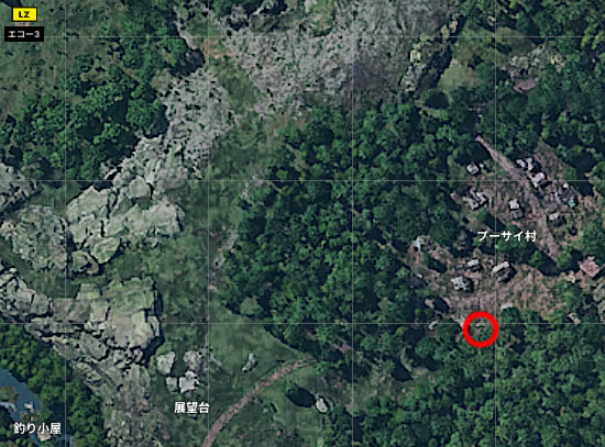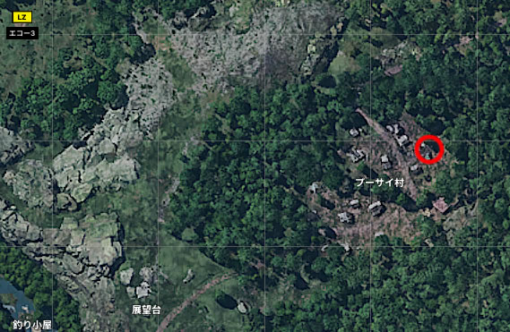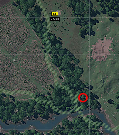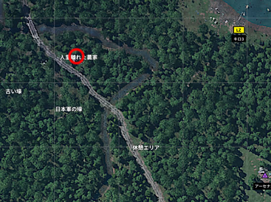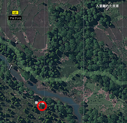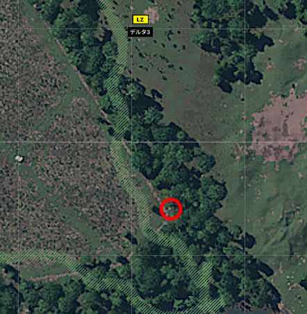 場所:LZインディア3に向かう山道の脇にある壊れた櫓とシートの間