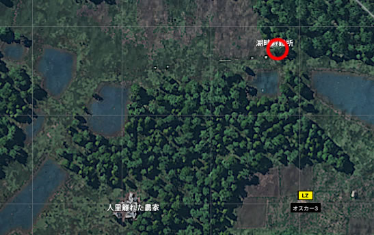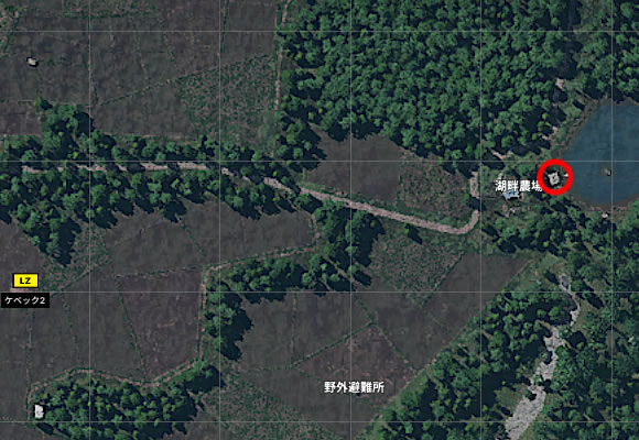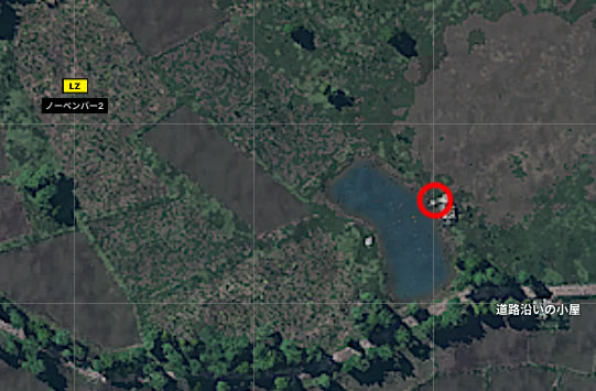 場所:LZケベック2の東、「湖畔農場」の湖の中にある小島のシート横