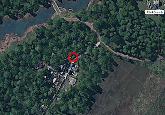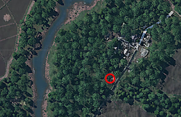 場所:「バン・マラ」の北東、道沿いにある材木置場の横で死んでいる豚の横