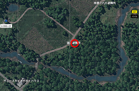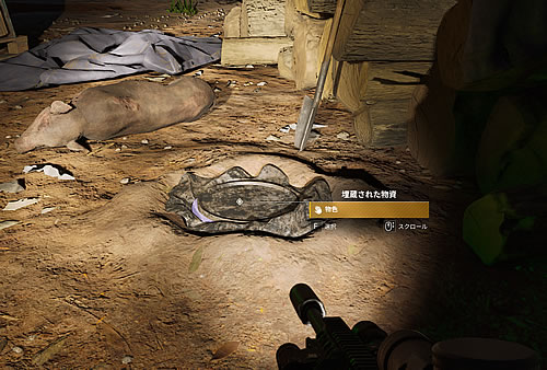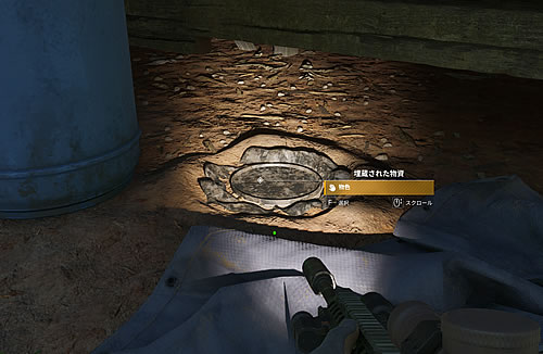 場所:戦闘拠点トマホークの東、「路上避難所」の建物裏のシートの横