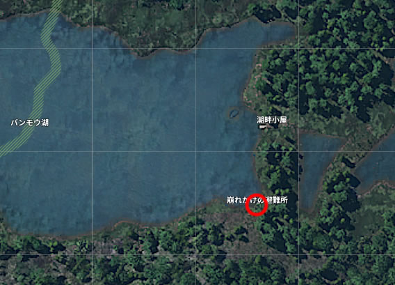 場所:「湖畔避難所」の横、ハシゴとシートの間