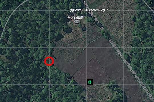 場所:「襲われたUNLRAのコンボイ」の南、田んぼの角にあるリヤカーとシートの間