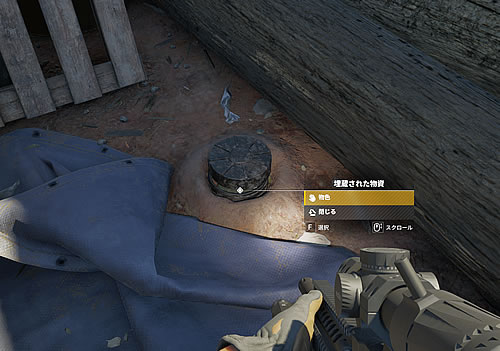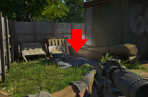 場所:LZアルファ1の北西、「人里離れた家」の右側倉庫の裏にある丸太横、大きさは2×6マス