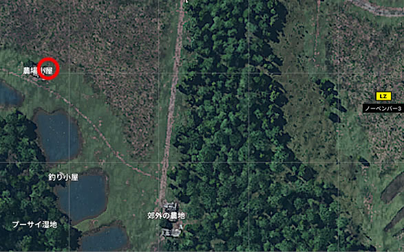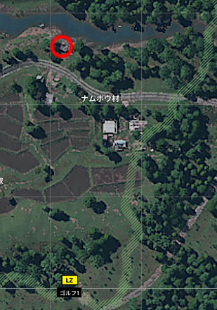 場所:LZノーベンバー3の西、湿地横の「農場小屋」の裏のスコップとシートの間