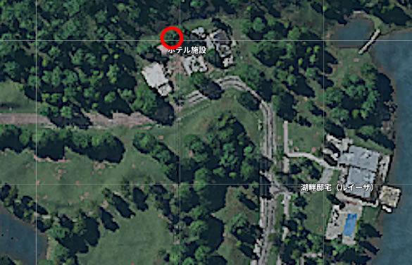 場所:「ホテル施設」の北側倉庫の裏にある一輪車とシートの間、大きさは5×9マス