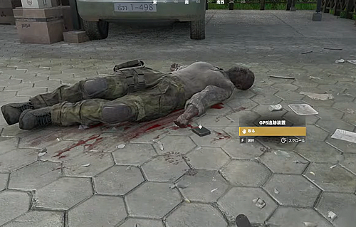 1.建物入口付近の死体の横にある「GPS追跡装置」