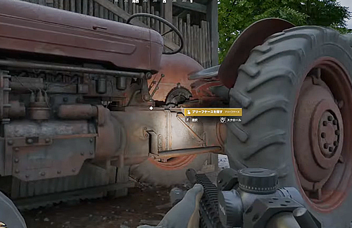 2.指定エリアにあるトラクターの下にブリーフケースを隠す。