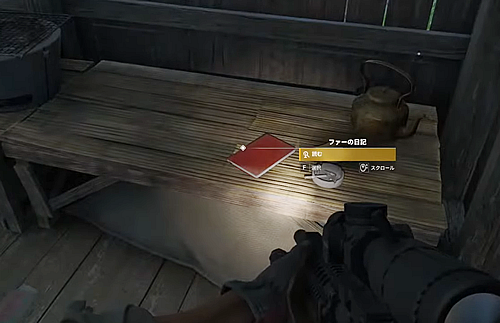 2.「人里離れた家」の中の机上の「ファーの日記」を読む。