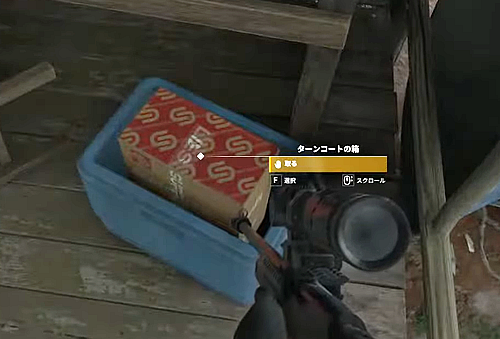 1.当該エリアの小屋内にある「ターンコートの箱」を取る