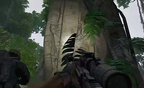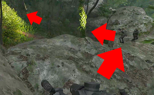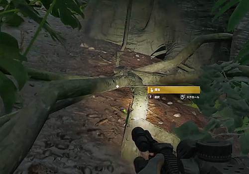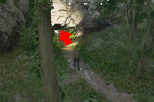 見つけづらいが、大きな木に真っ直ぐ縦に伸びてるツタの…地面の根っこあたりだ!