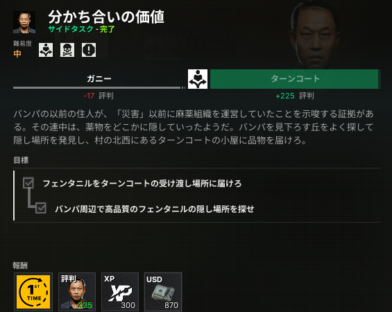 選択タスク:コンテナに入れると「ガニー・譲れない一線」が失敗となる。