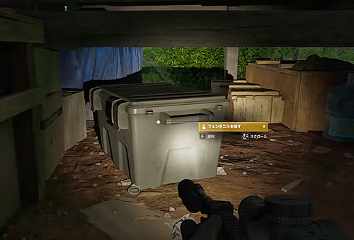 2.「古い小屋」の中にあるコンテナに「怪しい箱」を入れる