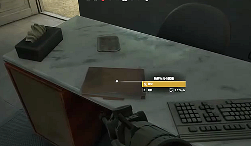 3.同「オフィス」の中央部屋の机上にあるファイル「新鮮な肉の配達」を読む