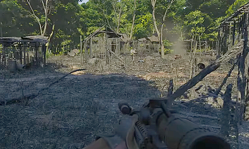 1.「バン・カムペット」の村の奥の、焼け落ちているエリアに近付く