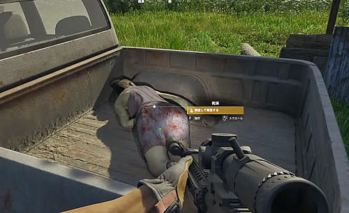 2.「路上避難所」に停めてある車の荷台の死体を調べる