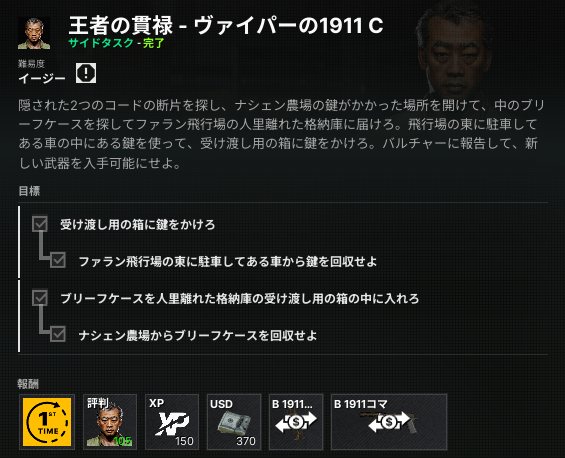 前提:ファラン飛行場のボス「ヴァイパー」を倒すと発生し強制受注する