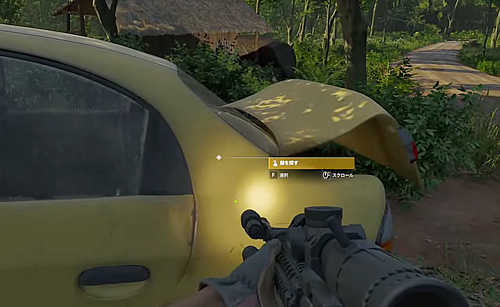 1.飛行場の北東の「川沿いの小屋」の横に停めてある黄色い車を調べ、「受け渡し用の箱の鍵」を取る。