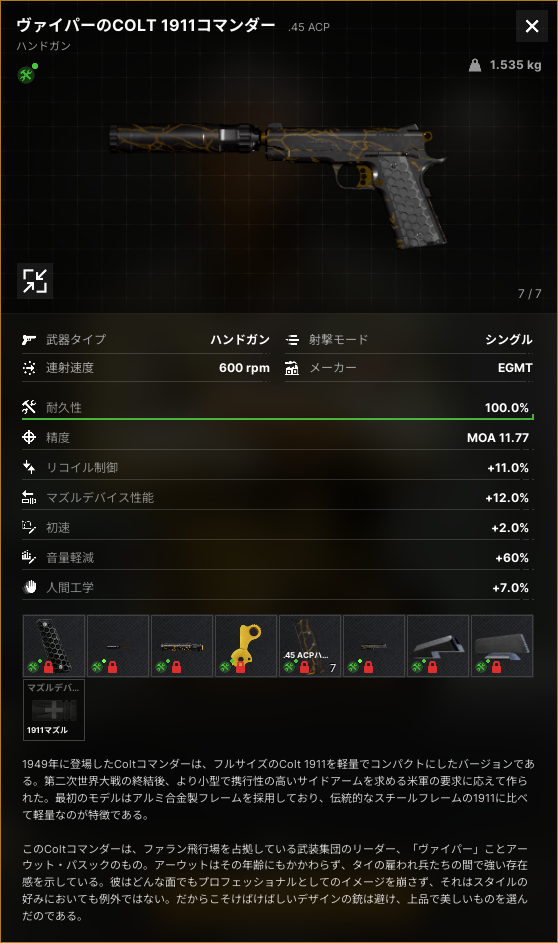 ヴァイパーのCOLT1911コマンダー、販売価格$6,634