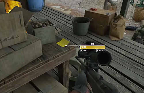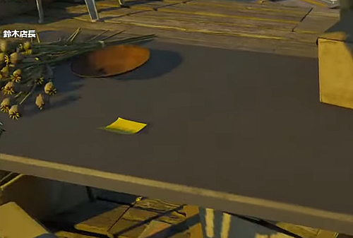 ・戦闘拠点ノーマッドの東南にある「隠されたケシ畑」の、納屋のテーブルに貼られた付箋に「xx35」という情報