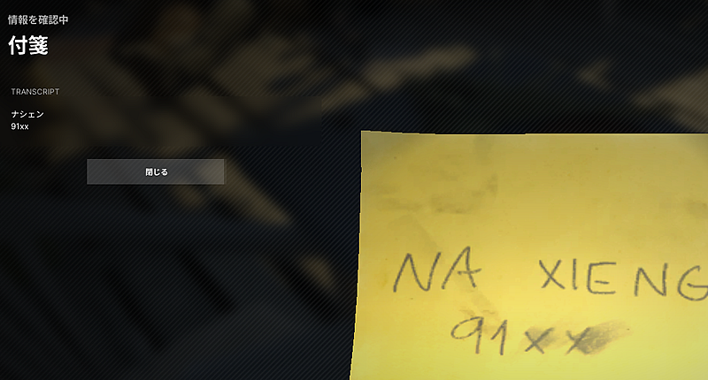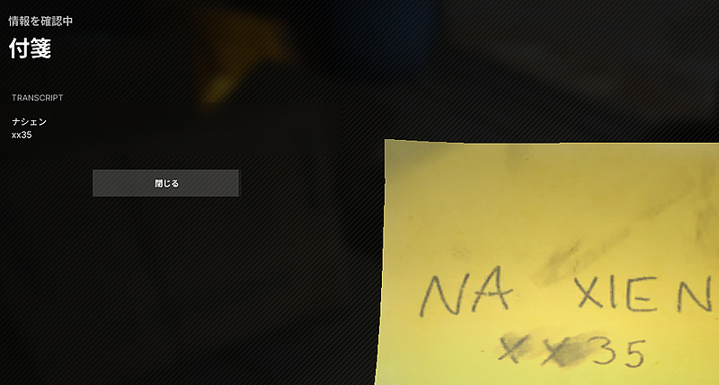 あまり大声ではいえないけど、0.4.1現在、付箋を見に行かなくても鍵の暗号は9135固定っぽい…