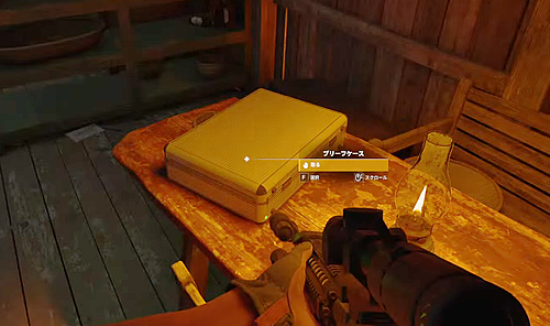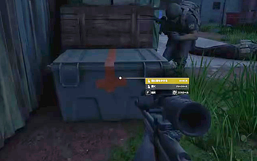 3.「人里離れた格納庫」の西側角にあるコンテナを調べ、まずはブリーフケースを置き、その次に鍵を掛ける。