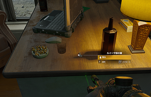 1.「湖畔邸宅(ルイーザ)」に鍵を開けて入り、バーカウンターの後ろの部屋内にあるノートパソコンを調べる。
