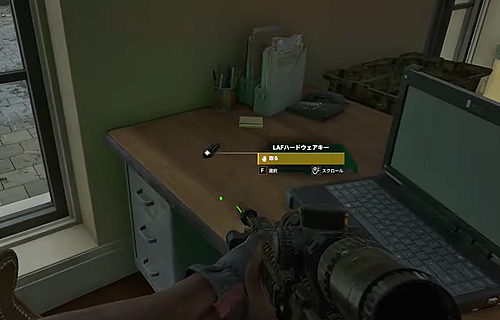 2.ホテルの受付フロント裏から廊下に入って左側二つ目の部屋の机上のパソコン横にある「「LAFハードウェアキー」を取る。