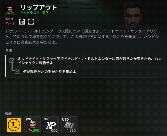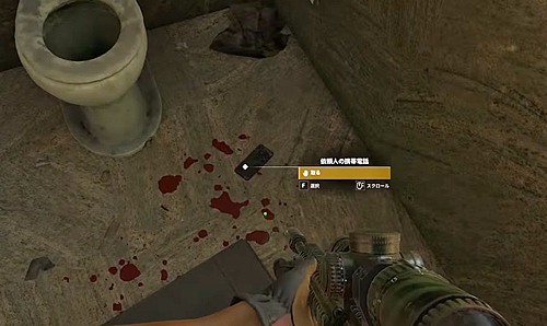 1.小型邸宅が並ぶ中の下から3軒目「ゴシア邸宅」、その家の奥にあるトイレの横に落ちている「依頼人の携帯電話」を取る。この家には鍵は掛かっていない。