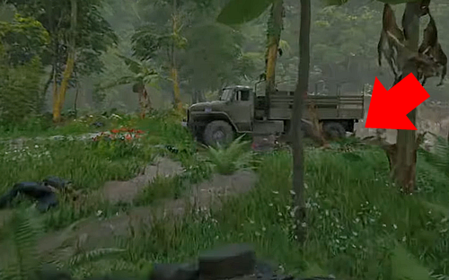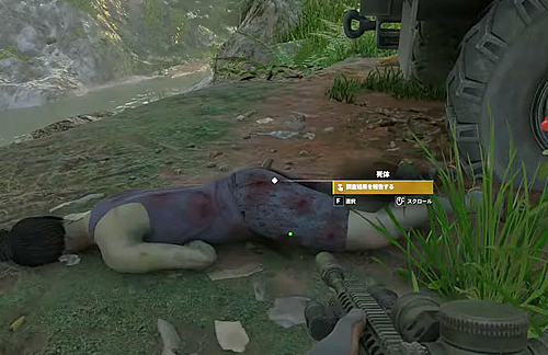 「パテップ湖」のほとり、「放置されたトラック」の後ろで地面に倒れてる死体を調べる。