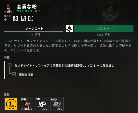 選択タスク:バンシーに渡すと「ターンコート・学術的関心」が失敗となる。