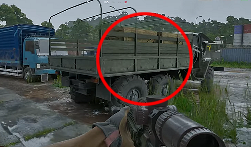 ・敷地内に停められている、積荷を積んだトラック