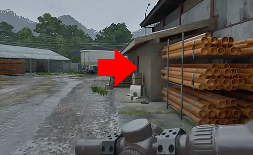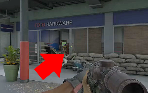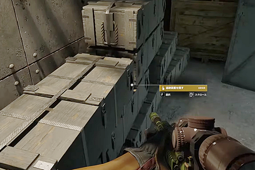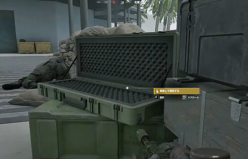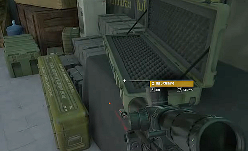 ・通路南側2階の物資が積まれてる中の、開いているガンケース
