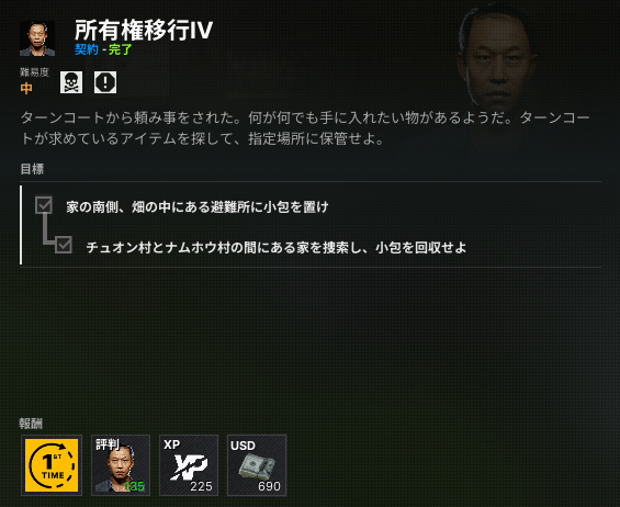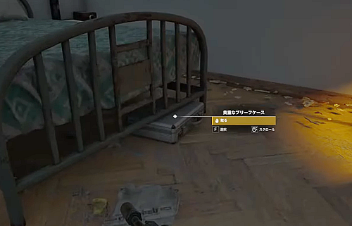 1.当該エリアの2階建て建物の、2階奥のベッドの下にある「貴重なブリーフケース」を取る。