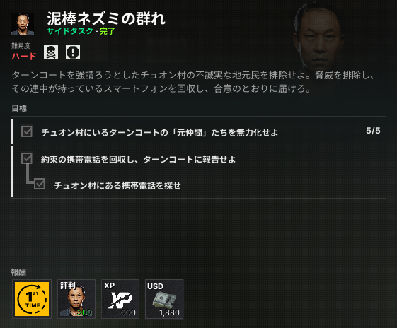 1.「チュオン村」エリアの敵を5人倒す。