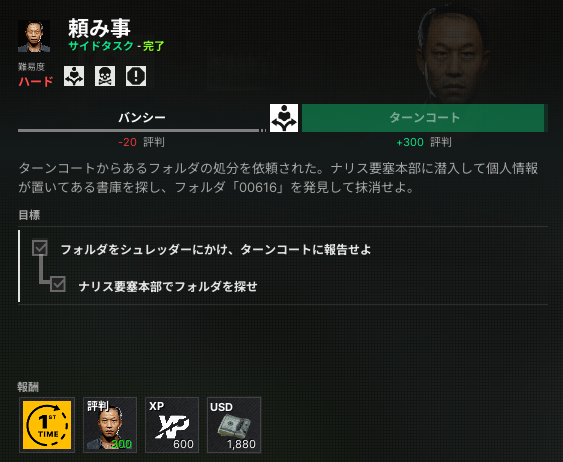 選択タスク:フォルダを処分すると「バンシー・ノー・エスケープ」が失敗となる。