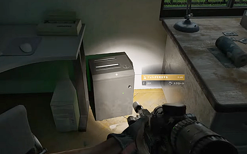 2.同じ書庫の机の横にあるシュレッダーを調べ、そのフォルダを処分する。