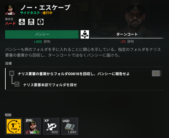 選択タスク:フォルダをバンシーに渡すと「ターンコート・頼み事」が失敗となる。
