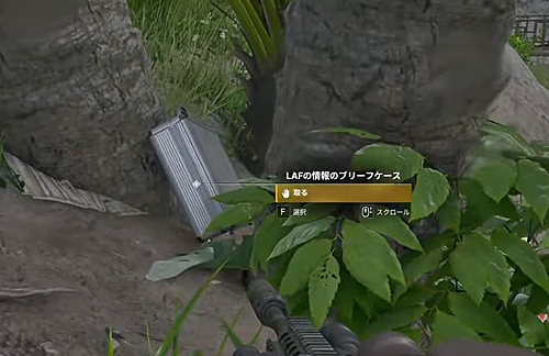 1.「湖畔休憩所」エリアの、出っ張った小島の木の間にある「LAFの情報のブリーフケース」を取る。